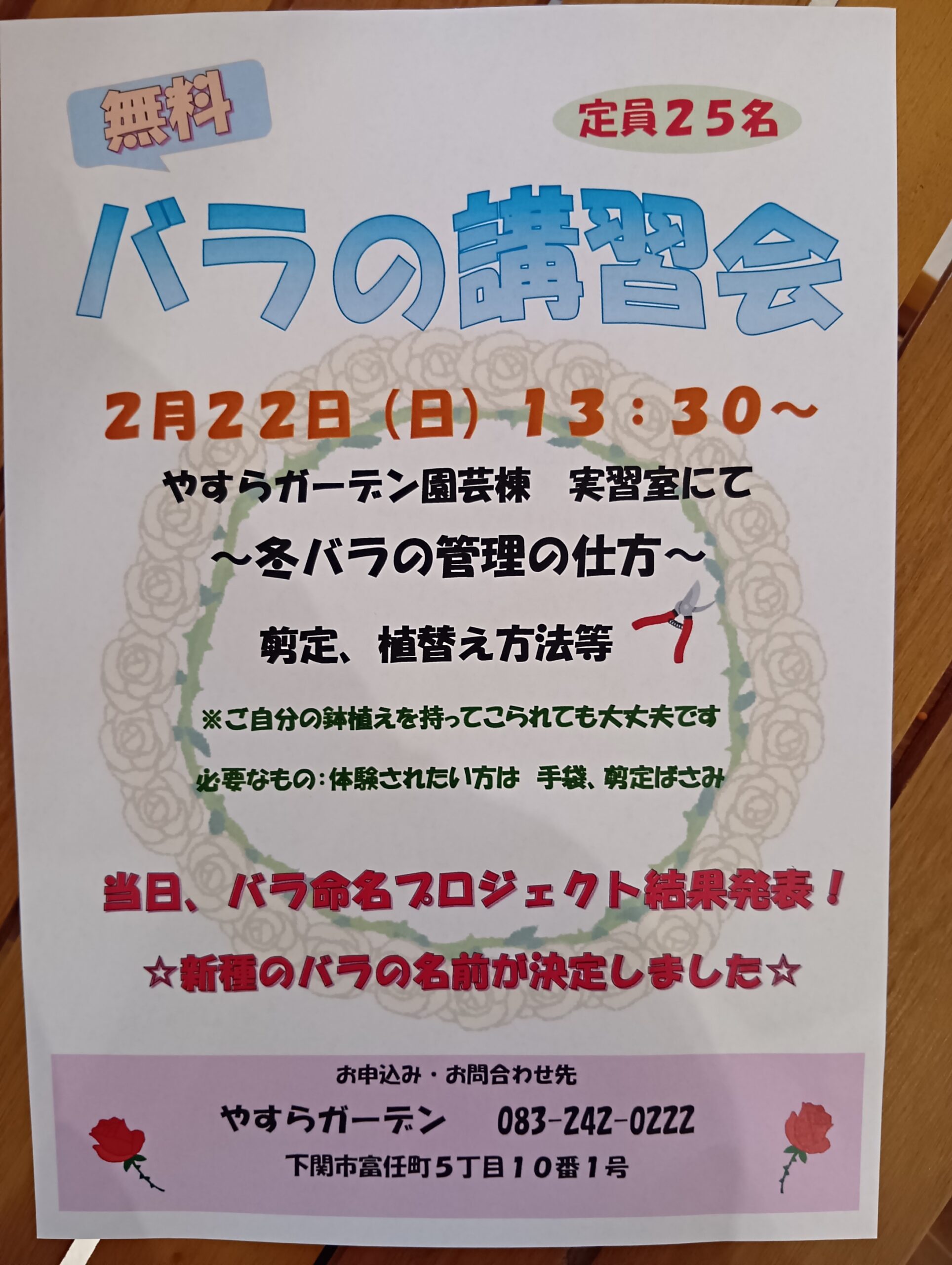 2月22日(日) バラの講習会(無料)