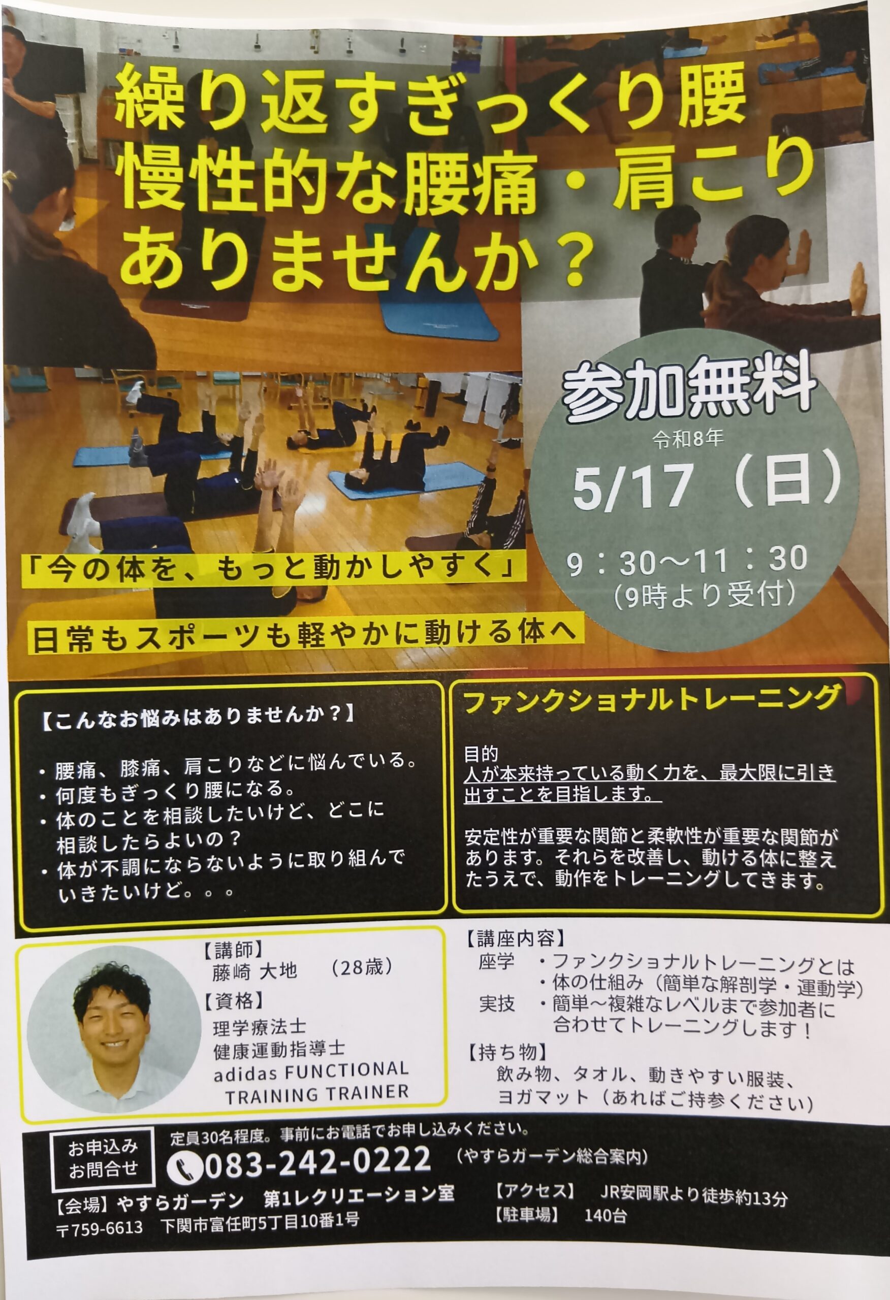 【講 師】 藤崎 大地(理学療法士・健康運動指導士他)